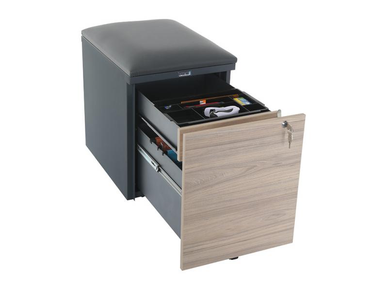 - Тумба офисная с пуфом Практикант 2 ящика (антрацит/вяз)